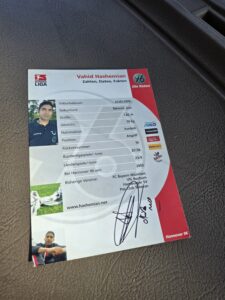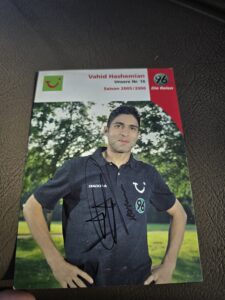 او پس از پایان نشست خبری، عکسی از کارت بازی او در بوندسلیگا که مربوط به سال ۲۰۰۵ و زمان عضویت او در هانوفر بود هدیه کرد و از هاشمیان تقاضای امضای آن را کرد.